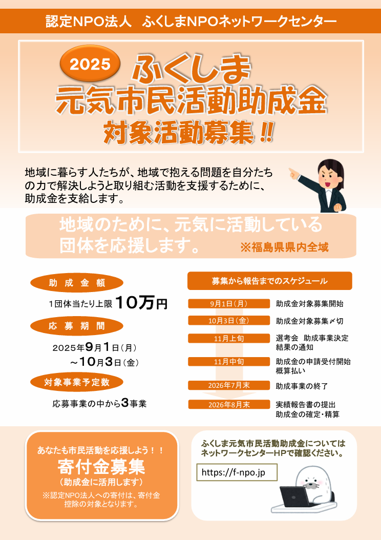 2025ふくしま元気市民活動助成金/認定特定非営利活動法人ふくしまNPOネットワークセンター
