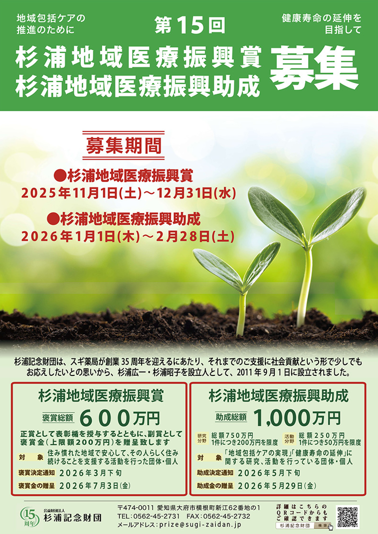 第15回杉浦地域医療振興賞/公益財団法人杉浦記念財団