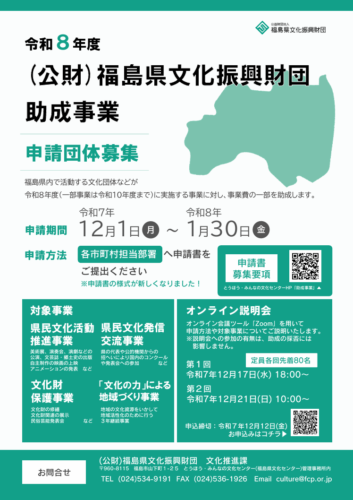 公益財団法人福島県文化振興財団 令和8年度助成事業/公益財団法人福島県文化振興財団